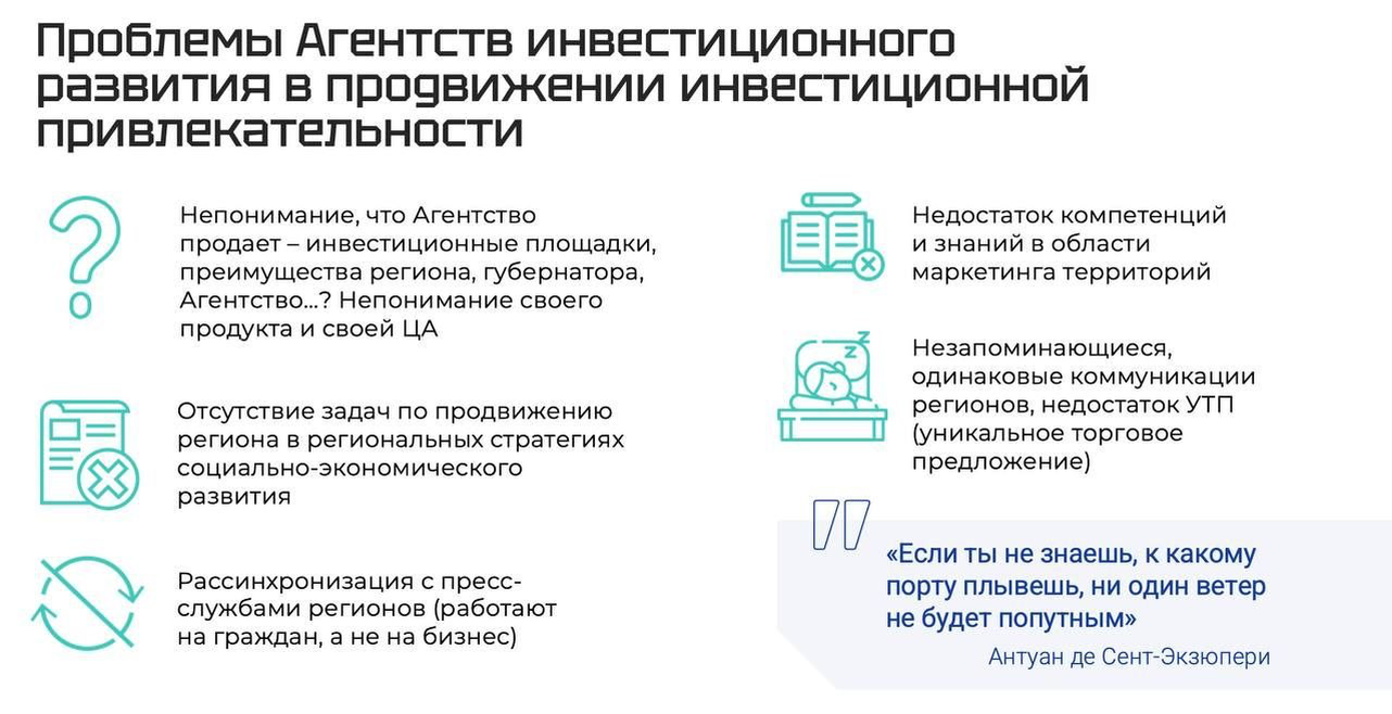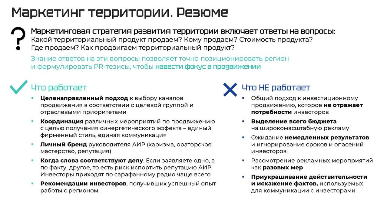 🟦В инвестиционном продвижении важно «попадать в потребности» — инвесторы приходят не только через рекламу, а по «сарафанному радио», когда слова совпадают с делом