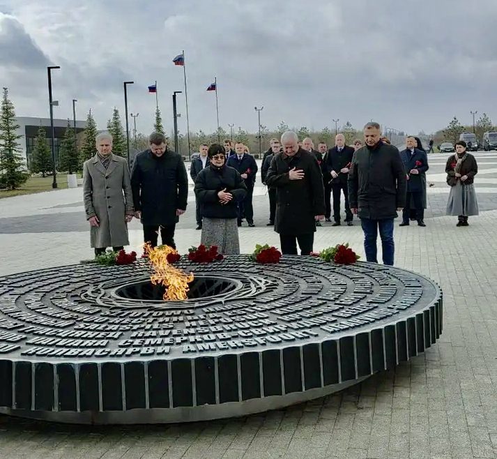 Члены белорусской делегации прослушали экскурсию и приняли участие в церемонии возложения цветов к Мемориалу.