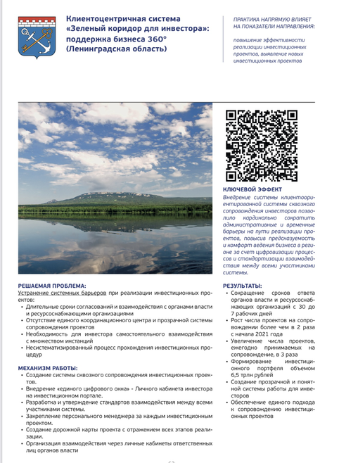 Клиентоцентричная система сопровождения инвестиционных проектов «Зеленый коридор для инвестора», внедренная в Ленинградской области, вновь получила высокую оценку.